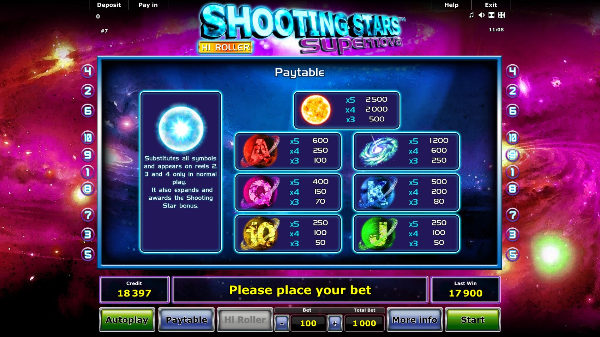Запустить автомат Shooting Stars Supernova бесплатно или играть на деньги можно в StarGames. Вам нужно будет зарегистрироваться, ведь иначе слоты нельзя открывать даже в демо-версиях.
