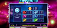 - Wild (голубая звезда) выпадает на трех средних барабанах в обычных спинах. Он не оплачивается, но заменяет другие картинки в цепочках. Может расширяться и запускать Shooting Stars Bonus.