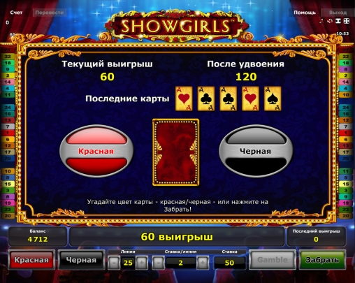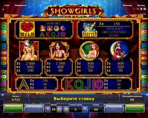 Красочная графика, потрясающие девушки, интересный призовой раунд, игра по шансам, особые символы, русскоязычный интерфейс – эти достоинства видео-слота Showgirls сделают его привлекательным для многих читателей портала Casinoz. Рекомендуем обязательно испытать.