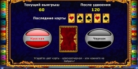 В каждом раунде может быть несколько выплат. По завершению спина нужно принимать решение: перевести выигрыш на счет или же поставить его на кон в игре по шансам. В данном раунде вам предстоит угадывать цвет закрытой карты. Если вам повезет, сумму удвоится. Ошибка приводит к проигрышу ставки. В одном подходе можно играть несколько раз подряд, пока вы не дойдете до установленного правилами потолка.