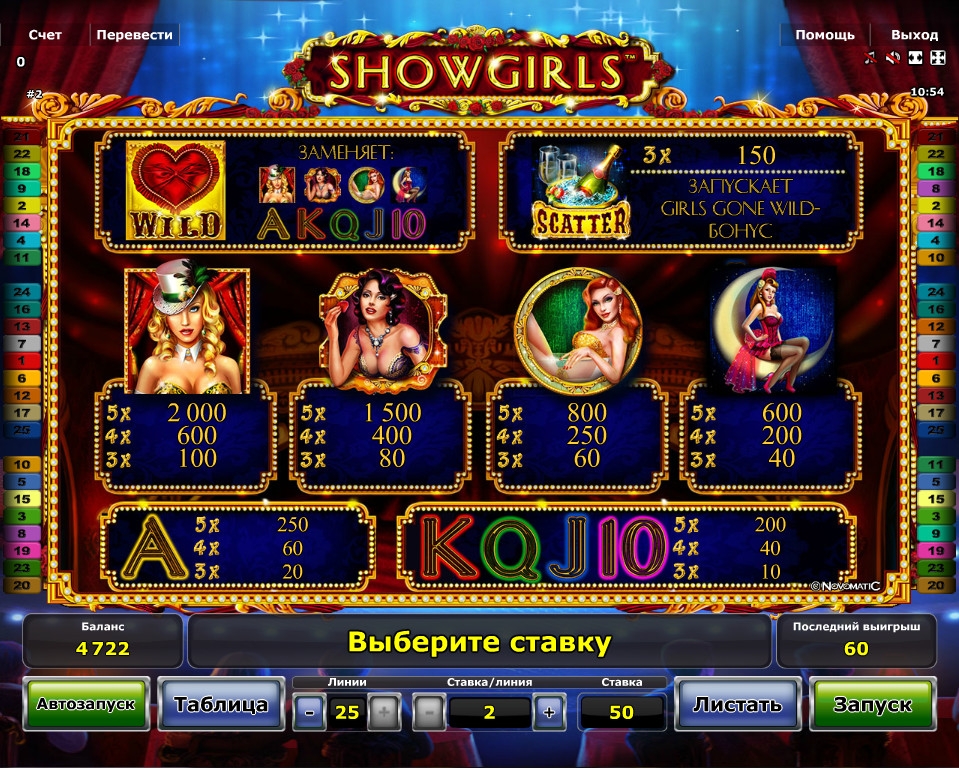 У нас нет данных о теоретическом возврате видео-слота «Шоу-девушки».