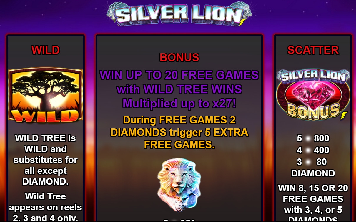 Набор доступных в Silver Lion опций геймплея состоит из разных видов картинок, фри-спинов, дополнительных множителей и прочих функций, обсуждаемых далее в статье.