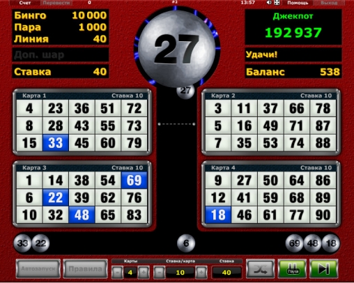 В списке азартных онлайн-игр, выпущенных компанией Novomatic, есть несколько моделей бинго. Одной из таких этих моделей является Silverball Bingo. Это интересная разновидность виртуального бинго, играть в которую можно сразу по нескольким билетам. К тому же, она обладает необычным интерфейсом, который является одним из ее многочисленных достоинств.