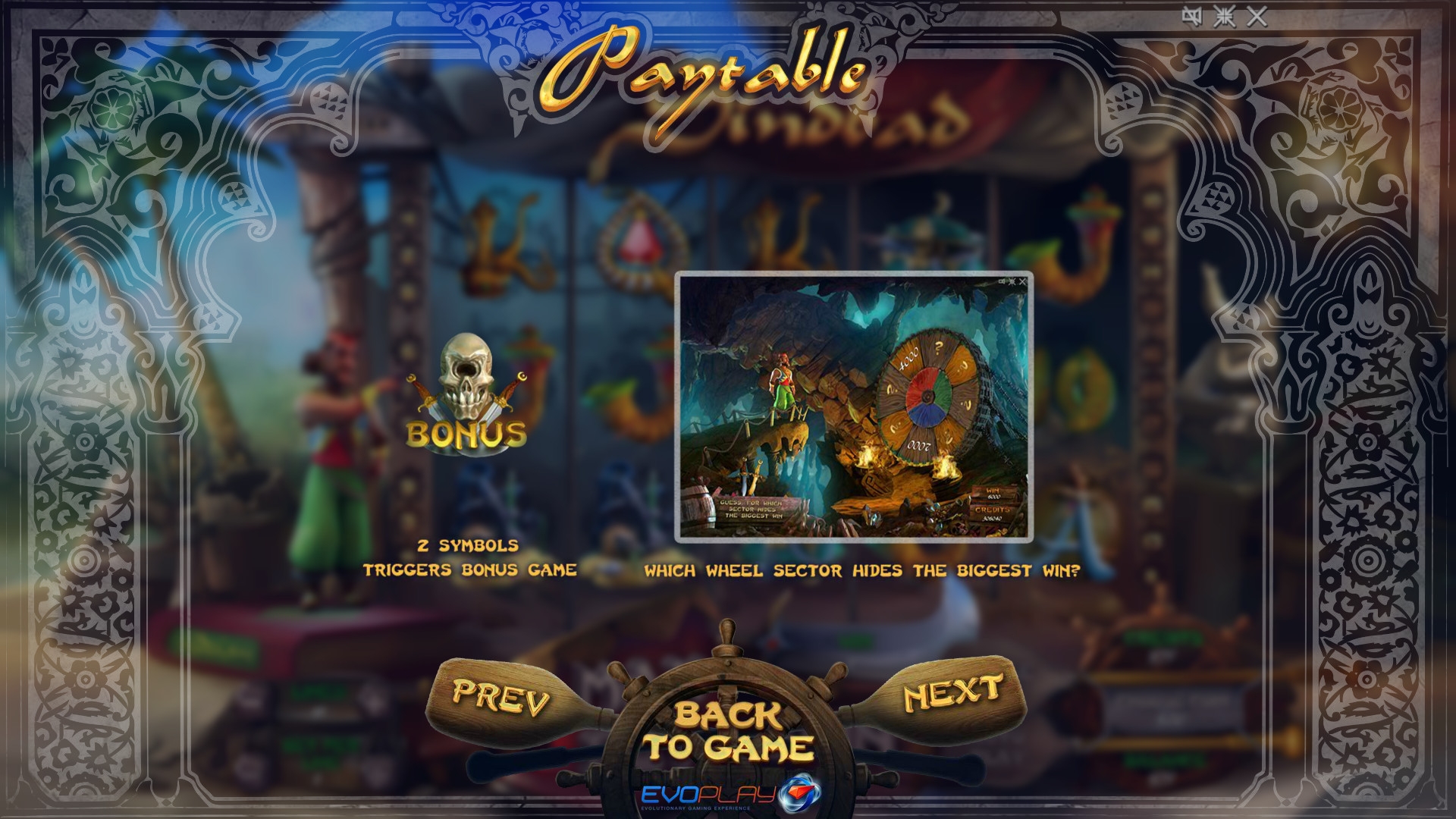 В призовом раунде, который открывается на дополнительном экране, Синдбад окажется в пещере, где установлено колесо фортуны. Он раскрутит его, чтобы узнать, какая бонусная выплата полагается клиенту.