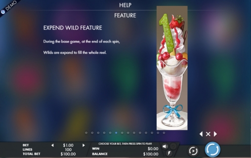 - Wild (десерт в виде четырех единичек) – это джокер. Он представлен на трех средних барабанах и всегда заполняет столбец сверху донизу. От двух джокеров запускают фри-спины.