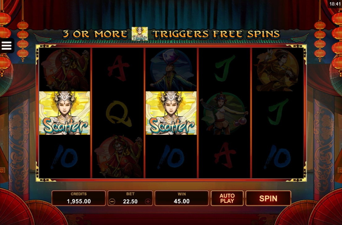 - Scatter (девушка в золотых одеждах) не зависит от расположения на экране. Два скаттера приносят выплату в размере двух общих ставок. От трех Scatter начинают призовые вращения.