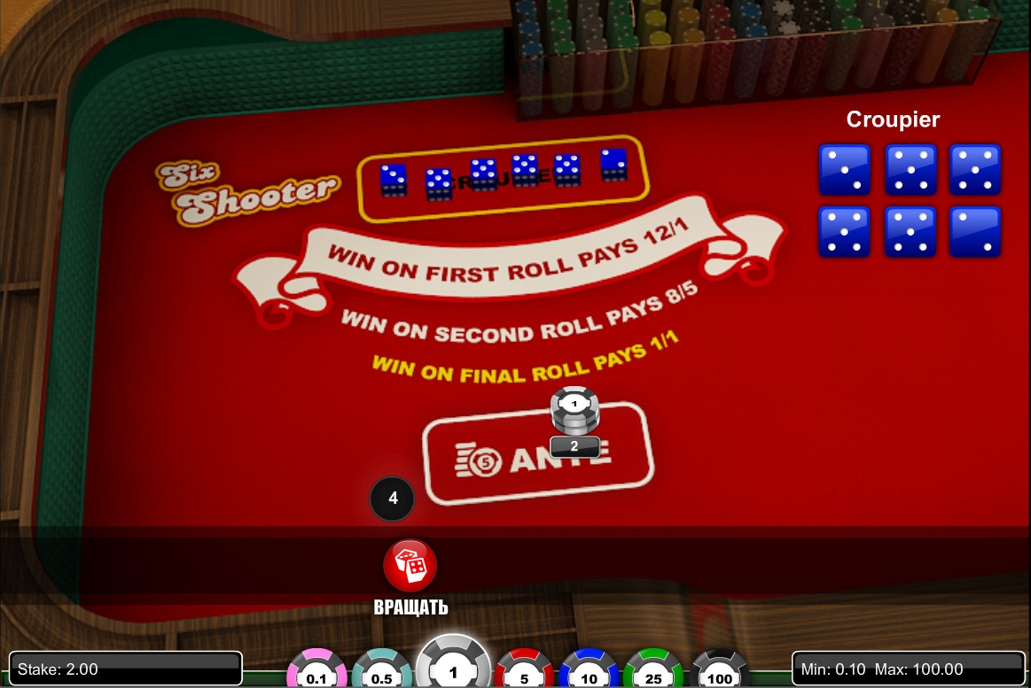 Six-Shooter – развлекательная азартная онлайн-игра, в которой используются стандартные игральные кости с шестью гранями. На каждую грань нанесены от одной до шести точек.