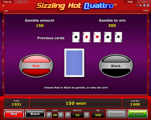 Игра по равным шансам запускается по желанию клиента. Здесь без сюрпризов: называете наугад закрытую карту, чтобы удвоить выплату. Если ошибетесь, лишитесь ставки. Разрешается действовать несколько раз подряд, пока не дойдете до максимума, но останавливаться можно на любом этапе.