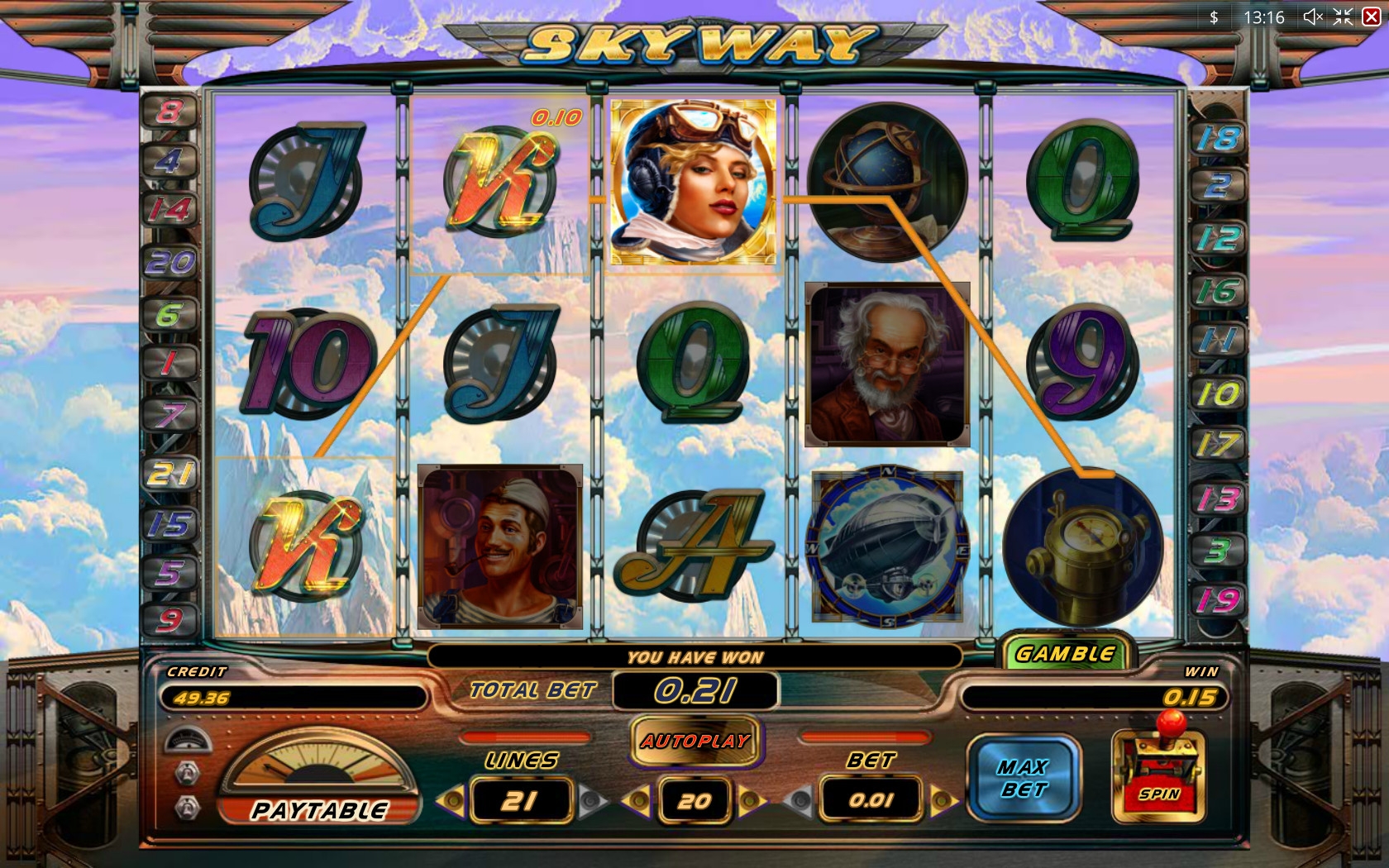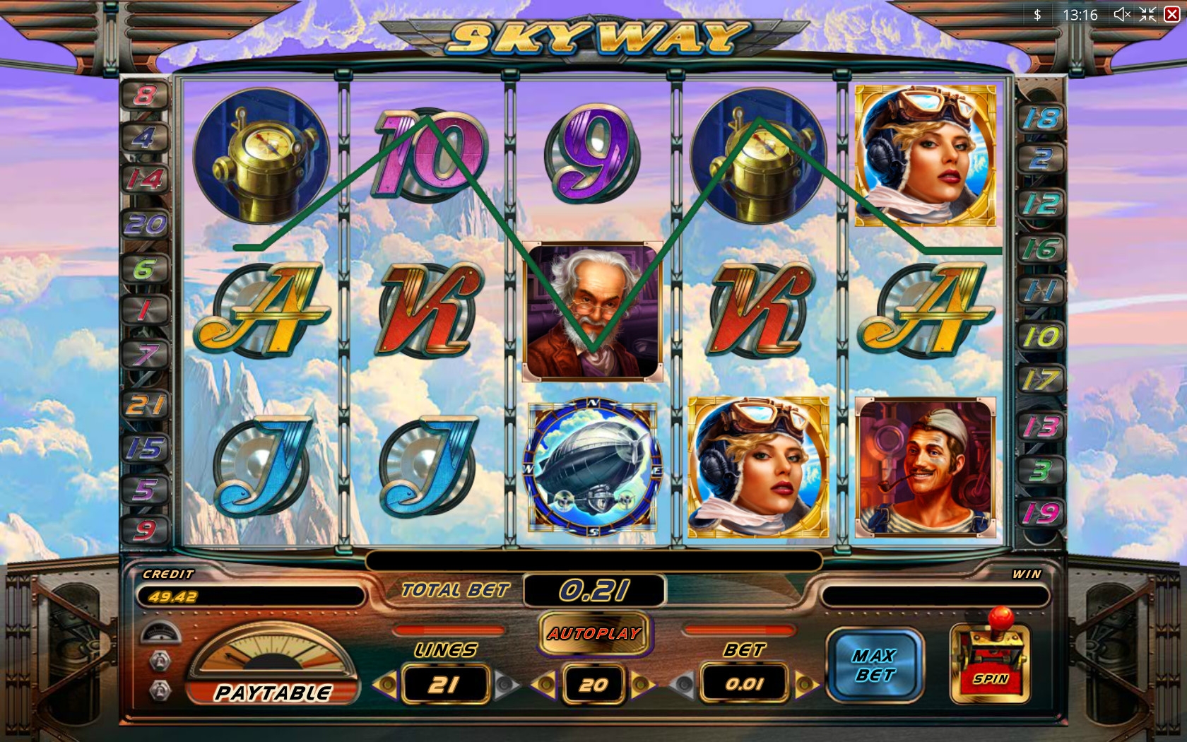 Skyway представляет собой 5-барабанный видео-слот, на котором можно играть по любому количеству задействованных линий от одного до двадцати одного.