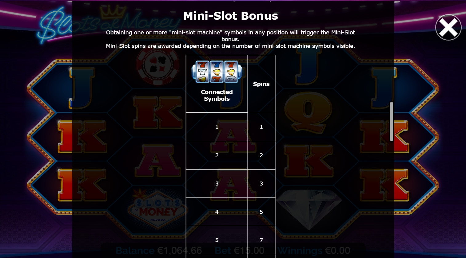 - Mini-Slot (игровой аппарат) – Эта иконка запускает призовые спины на мини-слоте.