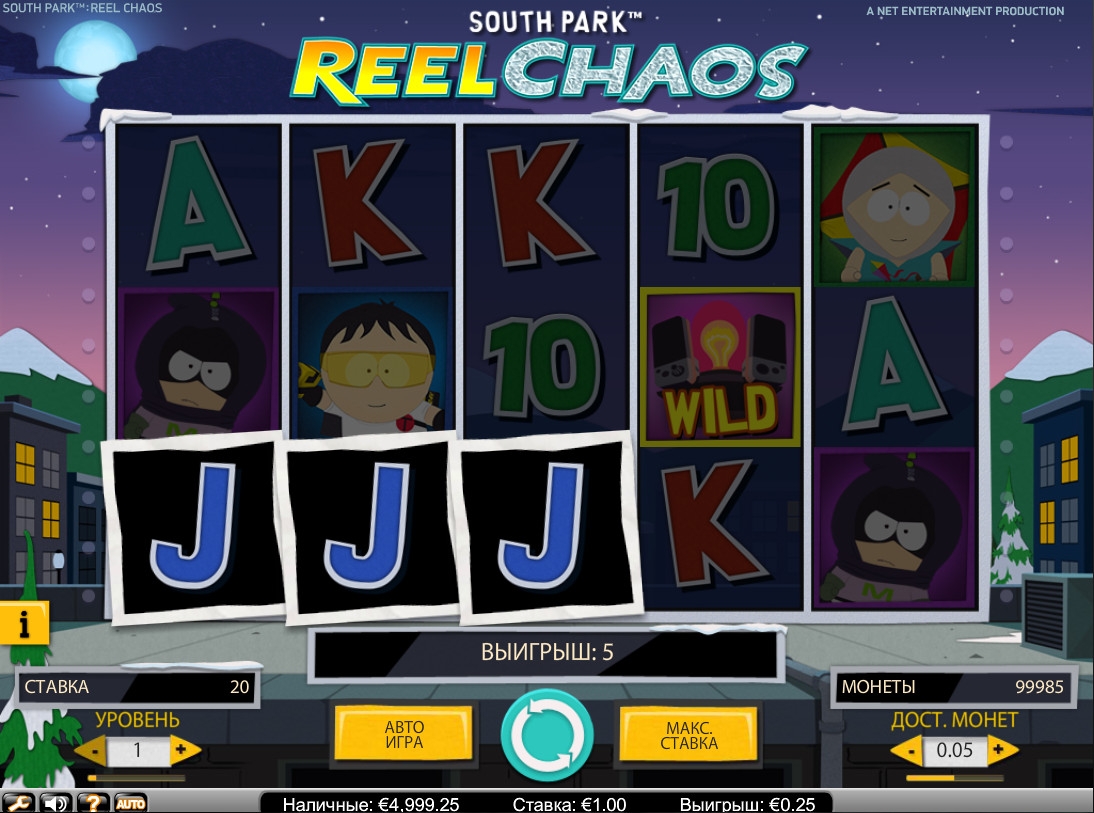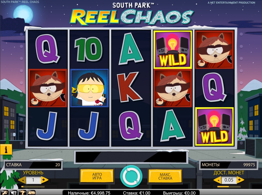 Очень многие казино работают на платформе Net Entertainment, поэтому вы найдете South Park – Reel Chaos на многих сайтах. Например, вы можете протестировать игровой автомат без регистрации на русском языке в Unibet Casino. Вы также можете испытать ее по тренировочным ставкам прямо на Casinoz.