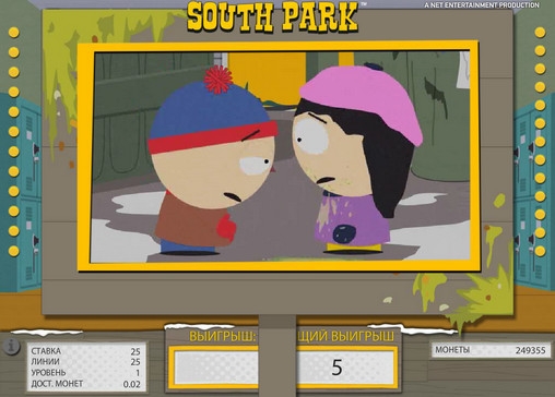 Разработчики из компании Net Entertainment позаботились о русскоязычных игроках и перевели интерфейс видео-слота South Park. При этом на русском доступны все диалоговые окна, надписи на панели управления и даже справочный раздел. Следовательно, нет необходимости учить вас, как пользоваться игровым автоматом.