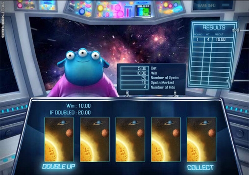 Игровое поле и кнопки управления процессом находятся на панели управления летающей тарелкой. Вместо шаров с выигрышными номерами здесь представлены планеты, летящие навстречу кораблю. Результаты розыгрышей также появляются на специальных табло, выдержанных в едином стиле.