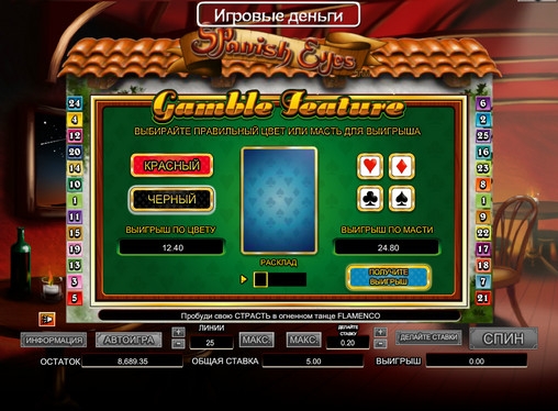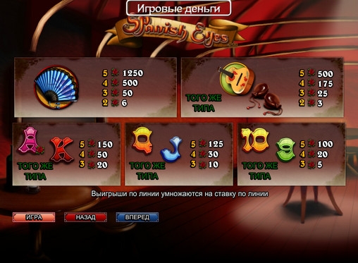 Информацию о теоретическом возврате видео-слота Spanish Eyes мы не нашли.
