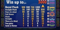 В видео-покере Spin Poker не разыгрывается накопительный джек-пот. Максимальная выплата равна 3000 монет (за роял флеш по ставке в пять монет).