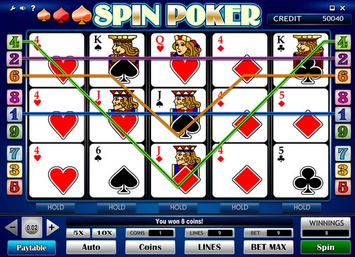 Spin Poker – бесплатный видео-покер онлайн с элементами игровых автоматов. В нем используются стандартные колоды в пятьдесят два листа без джокеров.