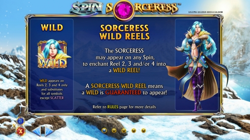 Вышеупомянутая опция Sorceress Wild Reels может быть активирована колдуньей в любом спине. От одного до трех барабанов будут полностью заняты символом Wild. Во время фри-спинов эта функция задействуется в каждом раунде.