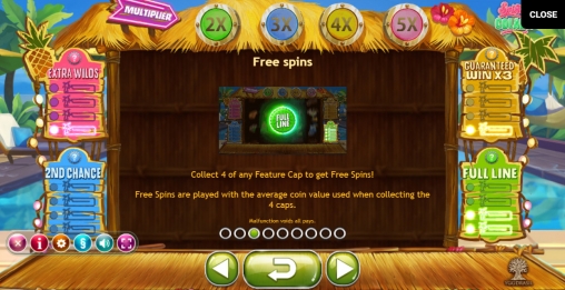 - Feature Cap Collection Board – В случайных спинах на экране появляются фишки четырех цветов. Они заполняют полосы на четырех табло, расположенных справа и слева от барабанов. Когда будут заняты все линии одного типа, игрок получит право на участие в фри-спинах с особыми призами. В их числе дополнительные джокеры, второй шанс на образование комбинаций и гарантированная выплата.