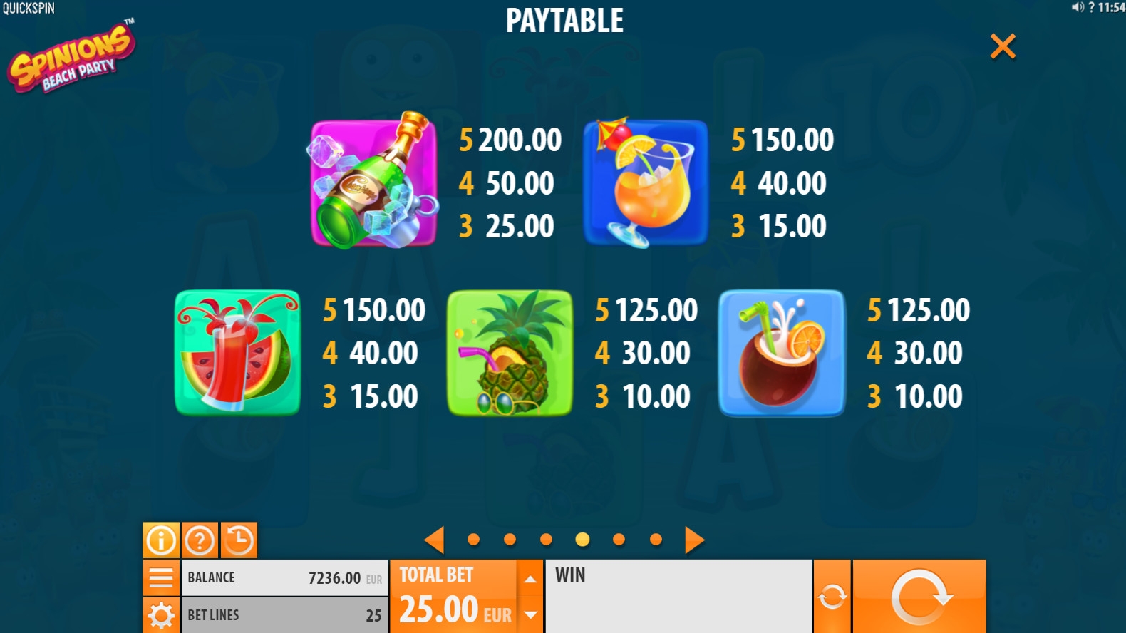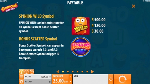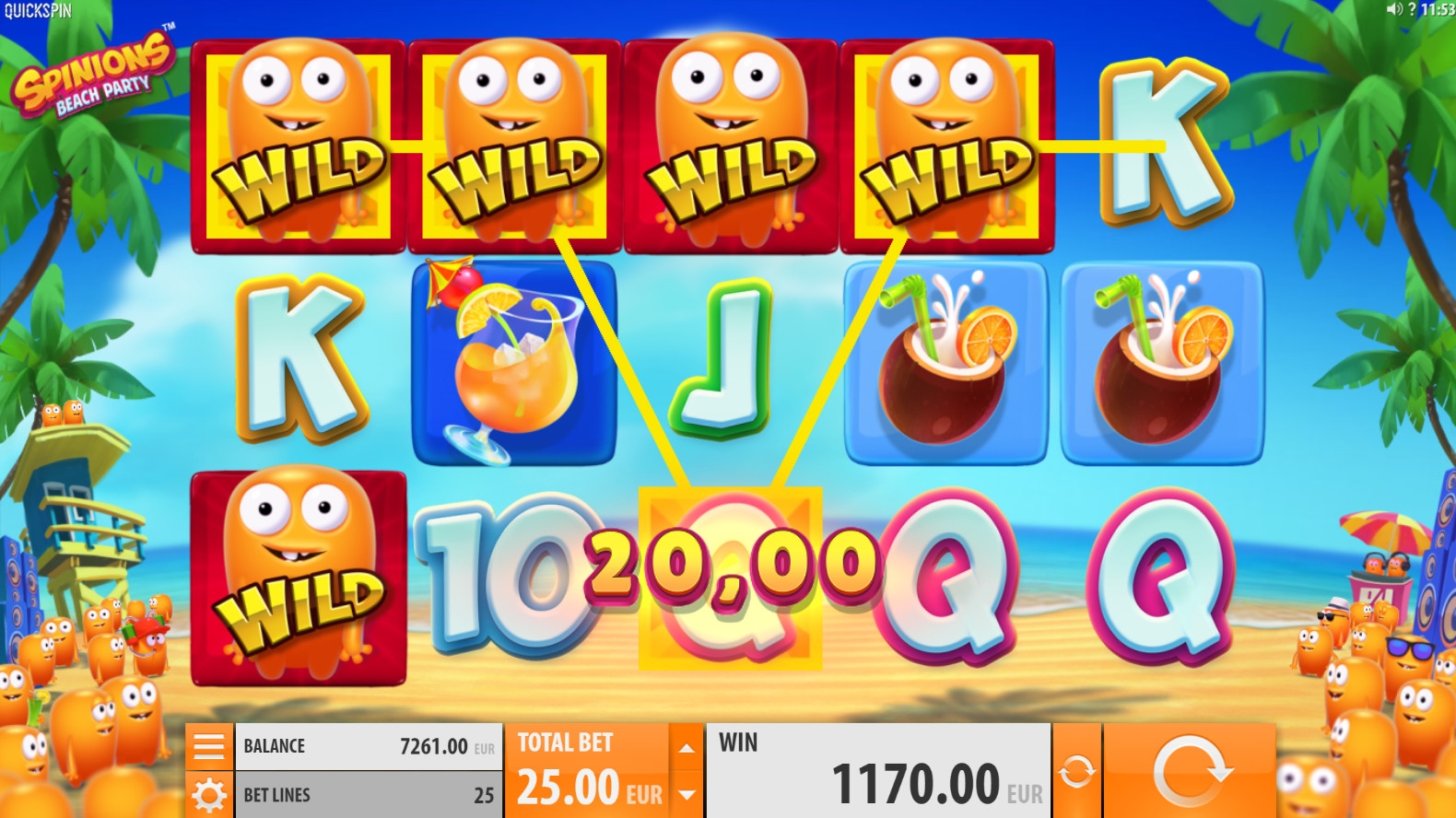 Встречайте забавных существ, которых разработчики из Quickspin назвали спиньонами! Думаем, не надо объяснять, на персонажей какого мультфильма они намекают. В компании этих неизменно веселых созданий вы будете получать многочисленные выплаты по комбинациям, участвовать в призовых спинах и других бонусных функциях. Вас ждет феерическая вечеринка, которую вы надолго запомните! Но сначала обсудим ключевые особенности игрового автомата Spinions: Beach Party.