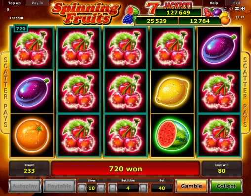 Вы найдет Spinning Fruits в Star Games и на других интернет-порталах, работающих на лицензионном «Новоматике». У нас есть видео-обзор слота, хотя лучше вам самостоятельно протестировать новинку, что можно сделать бесплатно.