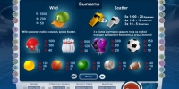 В ячейках на экране видео-слота нарисованы различные предметы, имеющие отношение к тем или иным видам спорта. Это шлемы, мячи, кегли, боксерские перчатки, шары для боулинга и так далее.