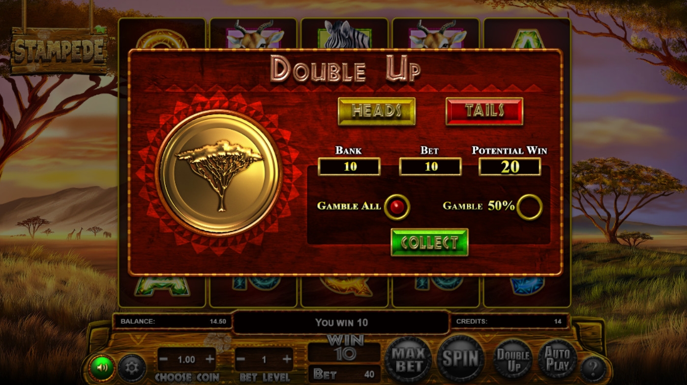 Начисленные деньги можно попытаться преумножить в игре на удвоение. Здесь вам предстоит сыграть в старинную забаву «орел или решка». На кон принимается вся сумма или 50% выплаты. Удачный ход удваивает выигрыш, а неудачный лишает вас денег. Подряд разрешается действовать несколько раз.