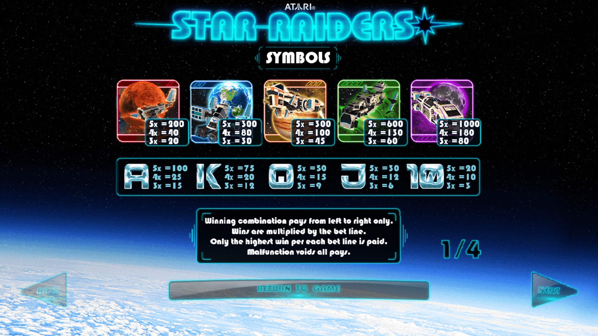 Star Raiders – онлайн-автомат с пятью барабанами, двадцатью фиксированными линиями и пятнадцатью изображениями на экране.