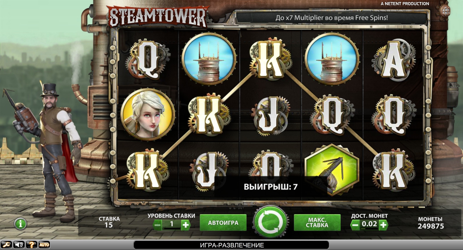 Бесплатные игровые автоматы, вдохновленные научной фантастикой в духе стимпанка, периодически выпускают разные производители софта для интернет-казино. Подобные модели есть в портфолио большинства ведущих компаний. Net Entertainment также порадовала ценителей оригинальных видео-слотов новинкой в данном стиле. Мы уверены, игра под названием Steam Tower понравится большинству наших читателей. Рекомендуем ее протестировать, даже если вы только что впервые услышали слово steampunk.