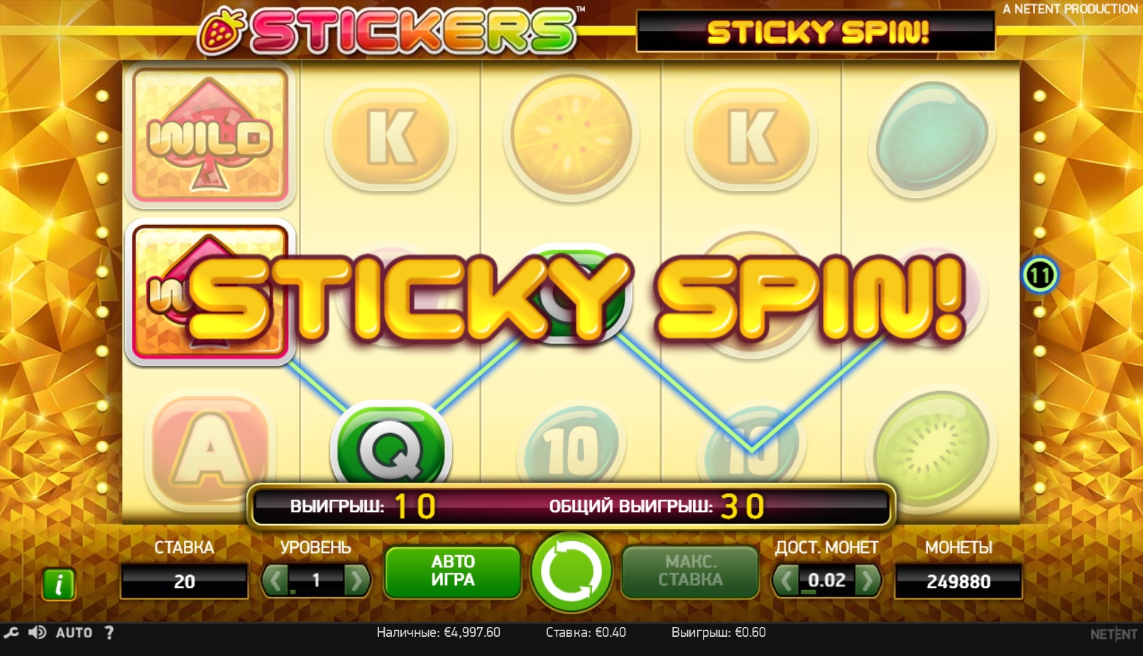 Если одновременно появляются несколько Sticky Wild, добавляется лишь один респин. Подробнее о них читайте в справочном разделе.