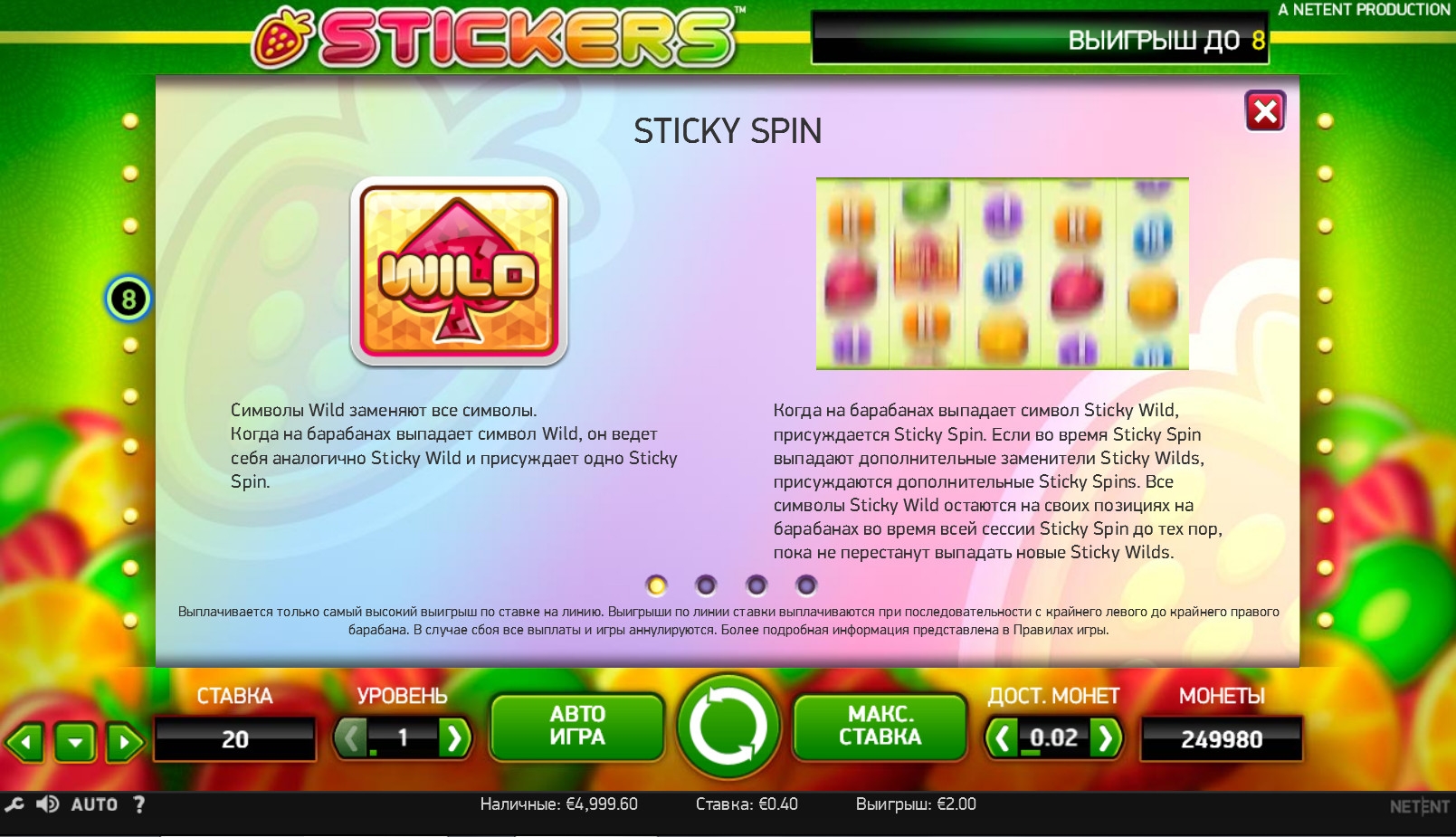 интересный видео обзор по внешнему интерфейсу и это не простой фруктовый слот, он более удобный, функциональный и интересней. "Липкий" дает уникальные возможности в игре