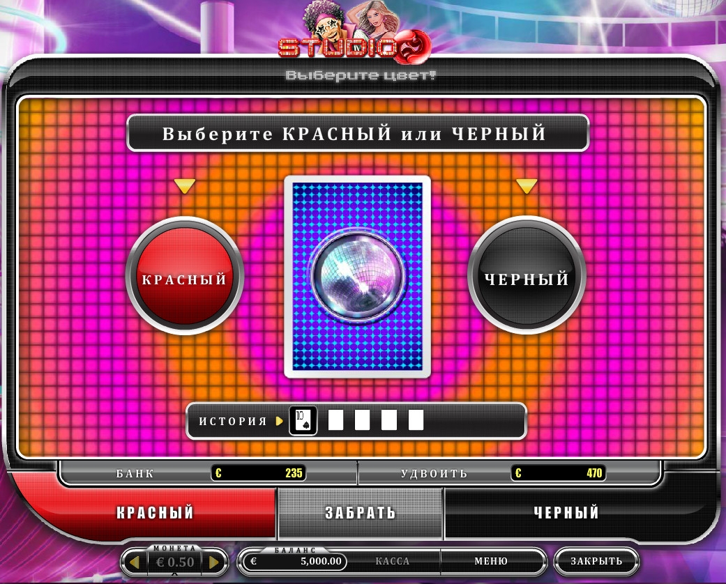По завершению раунда можно начать игру по равным шансам, в которой нужно угадывать цвет карты, чтобы удвоить выплату. Думаем, правила известны всем.
