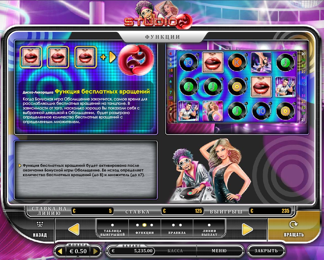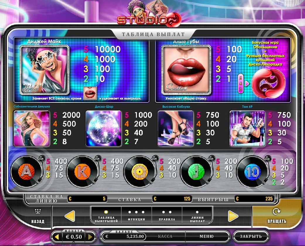 Игровой автомат для любителей клубной жизни и танцевальной музыки выпустили разработчики из компании Oryx Gaming. Если вы азартны и любите посещать ночные заведения, где с удовольствием «зажигаете» на танцполе, вам обязательно нужно поиграть на слоте «Студия 69». О его главных особенностях и возможностях рассказывается в обзоре от Casinoz.