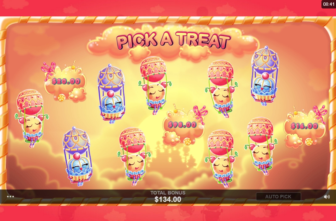 - Bonus Game – На дополнительном экране появляются сладости. Их нужно выбирать в произвольном порядке. Доступны три, четыре или пять попыток. Все иконки скрывают выплаты. Диапазон сумм зависит от ставки, по которой шла игра.
