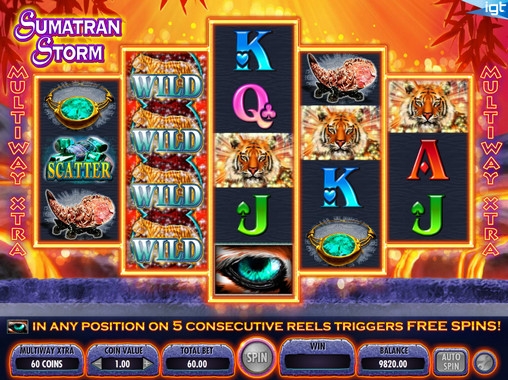 Ищите видео-слот Sumatran Storm в интернет-казино, использующих продукцию бренда IGT. Одним из таких заведений является Netbet Casino, в котором можно играть на деньги или же испытывать игровые автоматы без регистрации в тренировочном режиме.