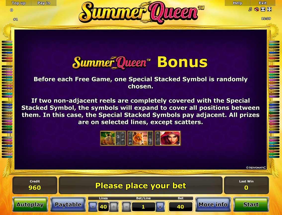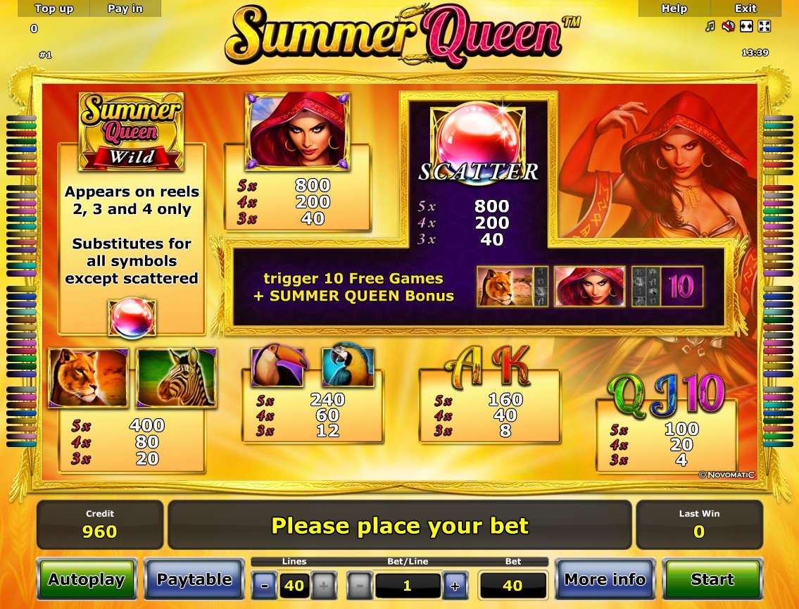 Прогрессивный джекпот Novomatic в Summer Queen не разыгрывается.