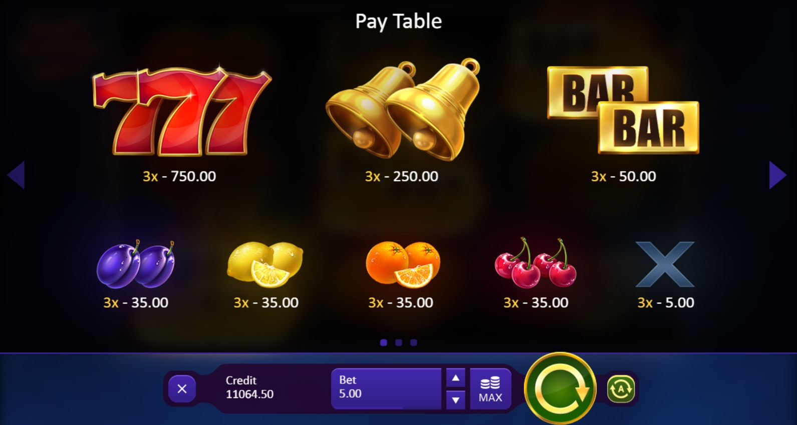 Оплачиваемые последовательности формируются только из трех одинаковых элементов. Они должны оказаться на активной линии. Комбинаций может быть не более пяти в одном раунде.