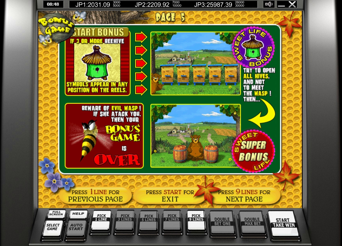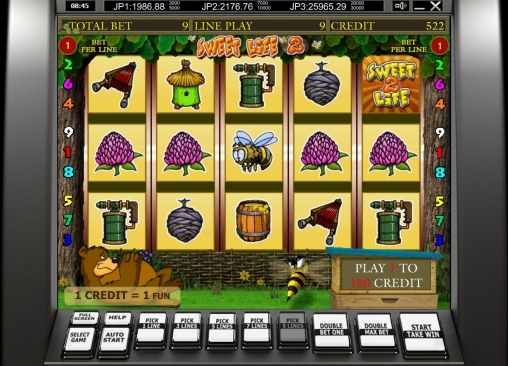 Социальная сеть для игроков Casinoz продолжает рассматривать известные игровые автоматы, которые пользовались невероятным спросом во времена первых слот-залов в стране и остаются достаточно популярными в онлайн-версиях для интернет-казино. На очереди модель под названием Sweet Life, главным героем которой стал медведь-сладкоежка, обожающий дикий мед. Напомним, что выпустила ее компания Igrosoft.