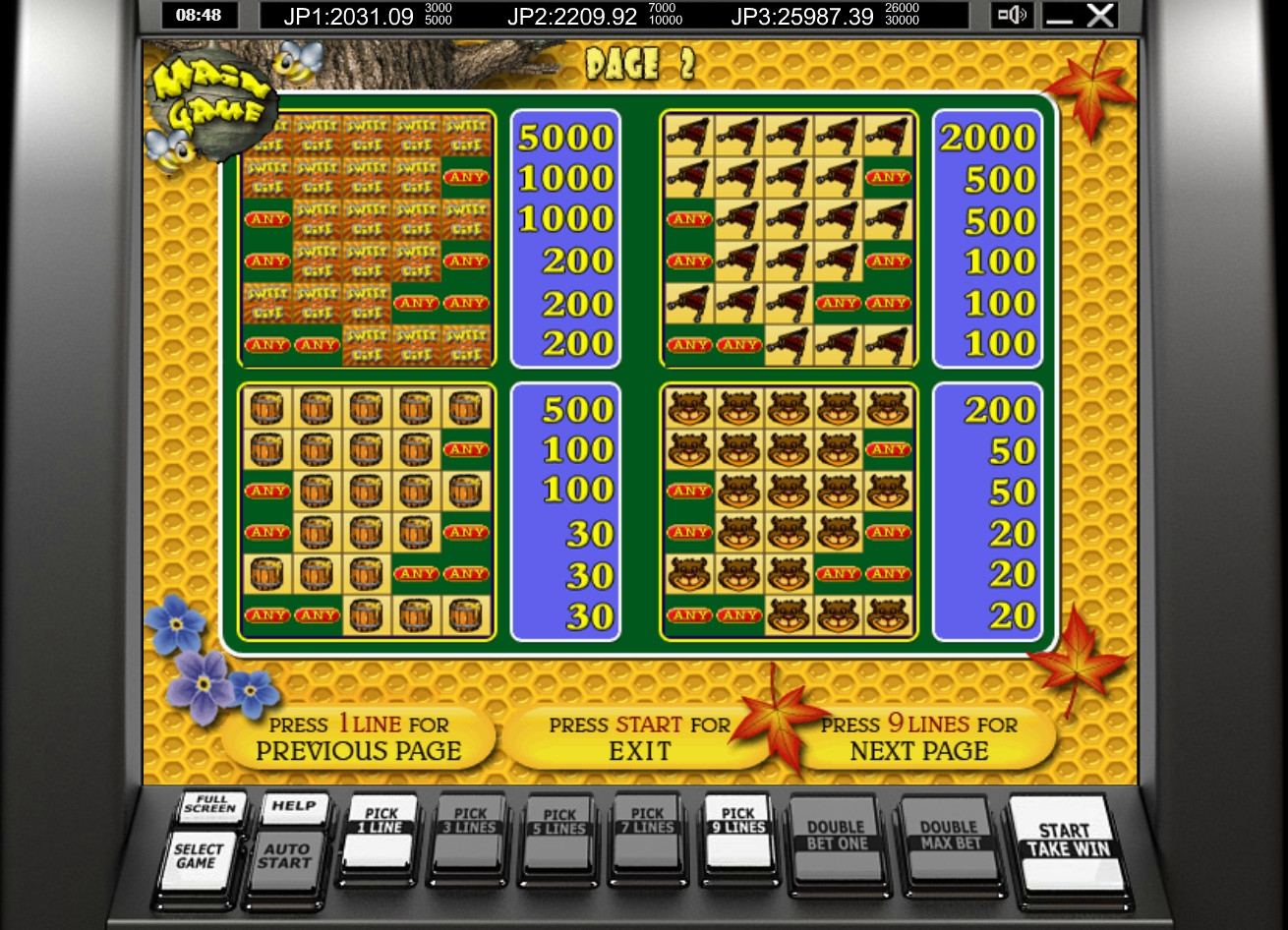 Помимо самого медведя, на экране слота появляются различные предметы, имеющие отношение к производству меда, пчелы, цветы и так далее.