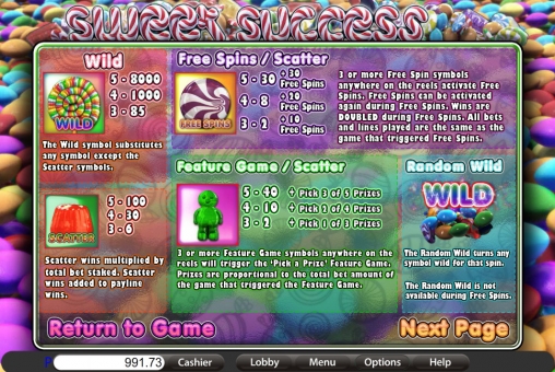 «Сладкий успех» - 5-барабанный слот с пятьюдесятью линиями и тремя рядами символов на экране. Он имеет несколько особых картинок, бесплатные спины и некоторые другие опции, о которых вы прочтете ниже.