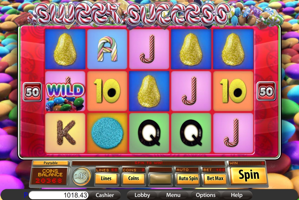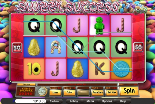 Играть в Sweet Success разрешается по любому количеству активных линий вплоть до пятидесяти. Ставка на линию может достигать пяти монет номиналом 0.01, 0.05, 0.10 или 0.25 евро. Таким образом, максимальная сумма, которая принимается на раунд, равна 62.50 евро.