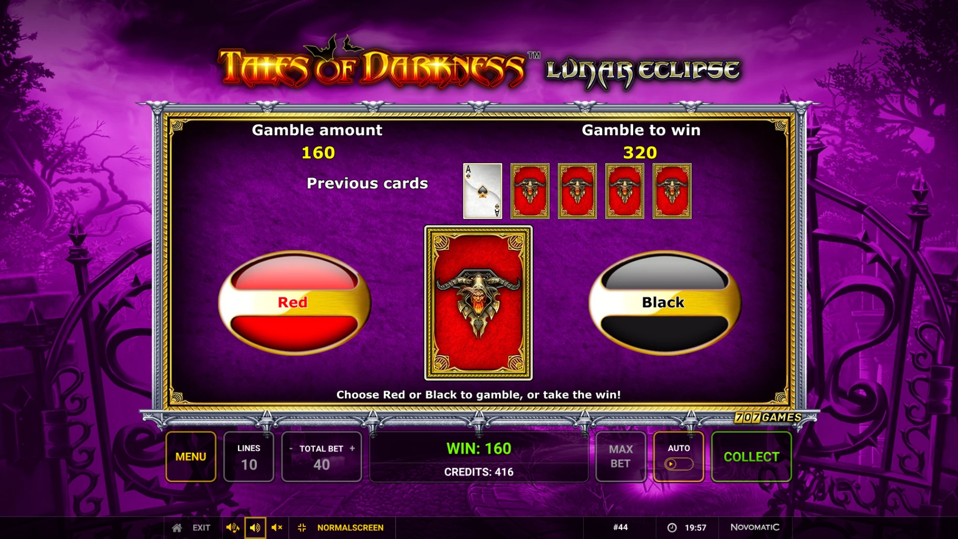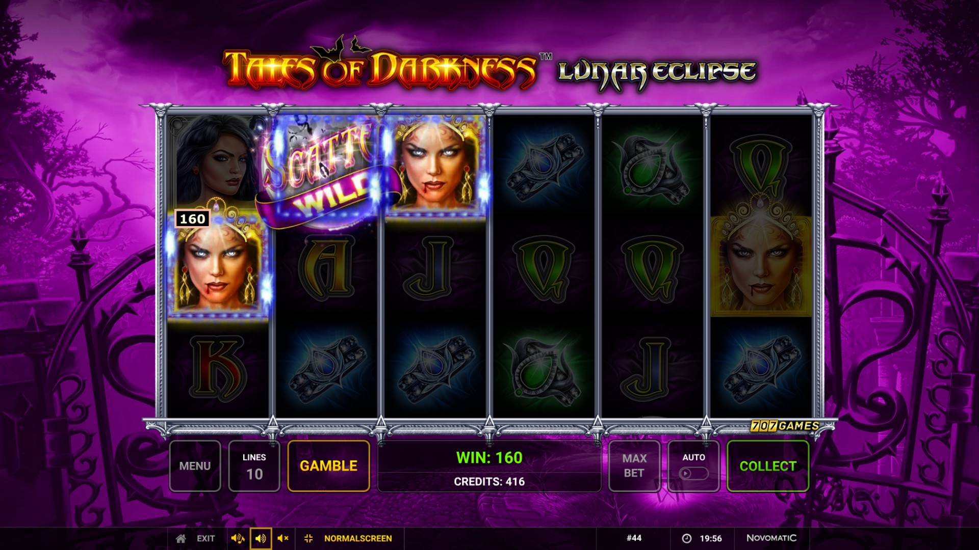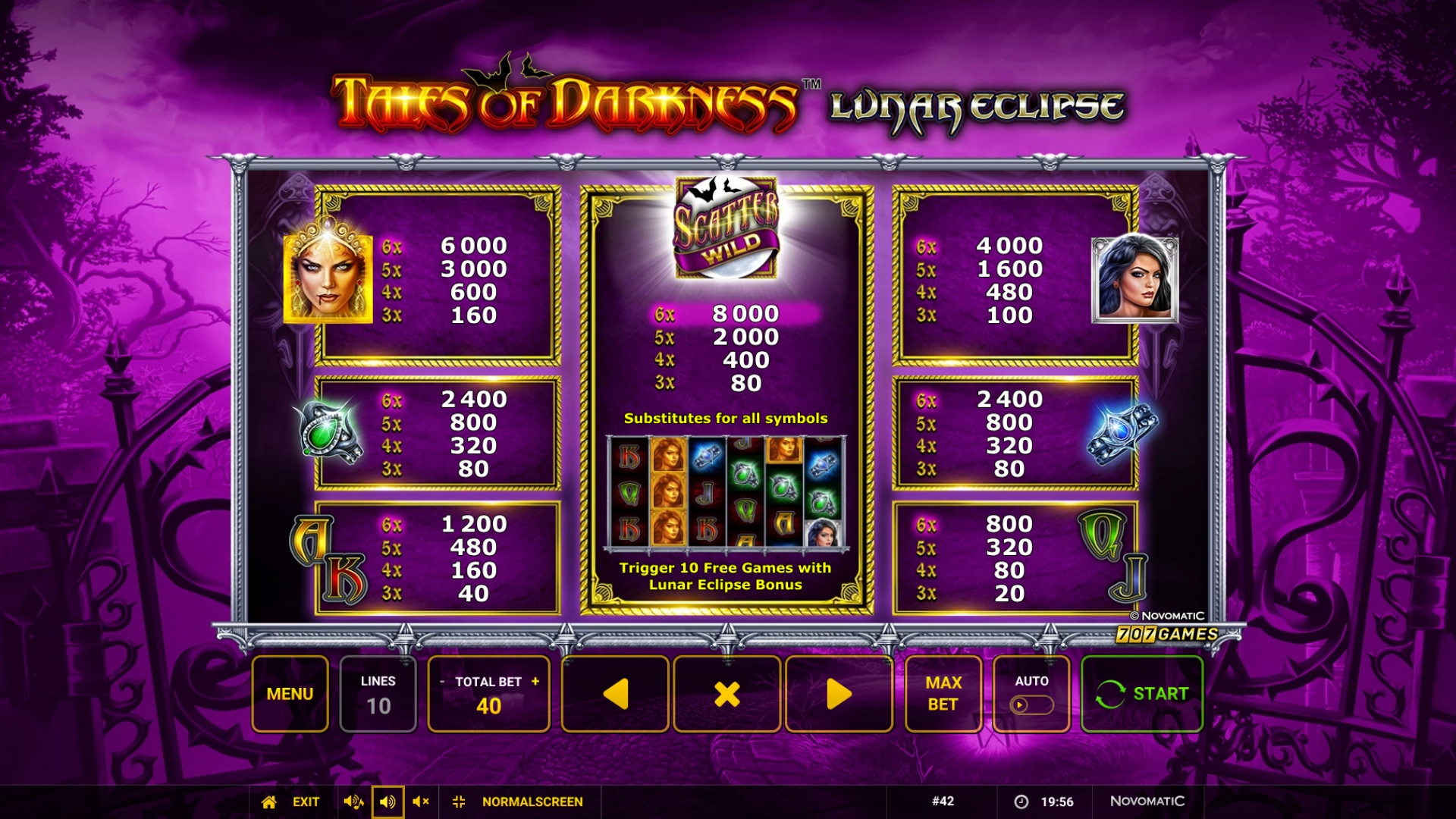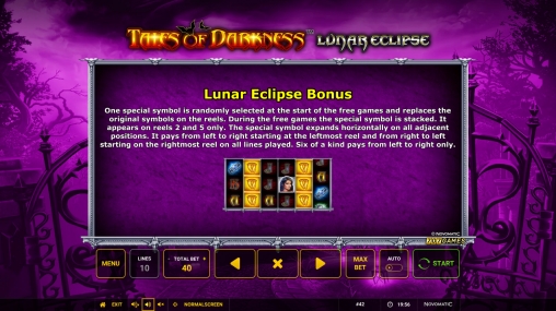 В Tales of Darkness: Lunar Eclipse нет прогрессивного джекпота Novomatic.