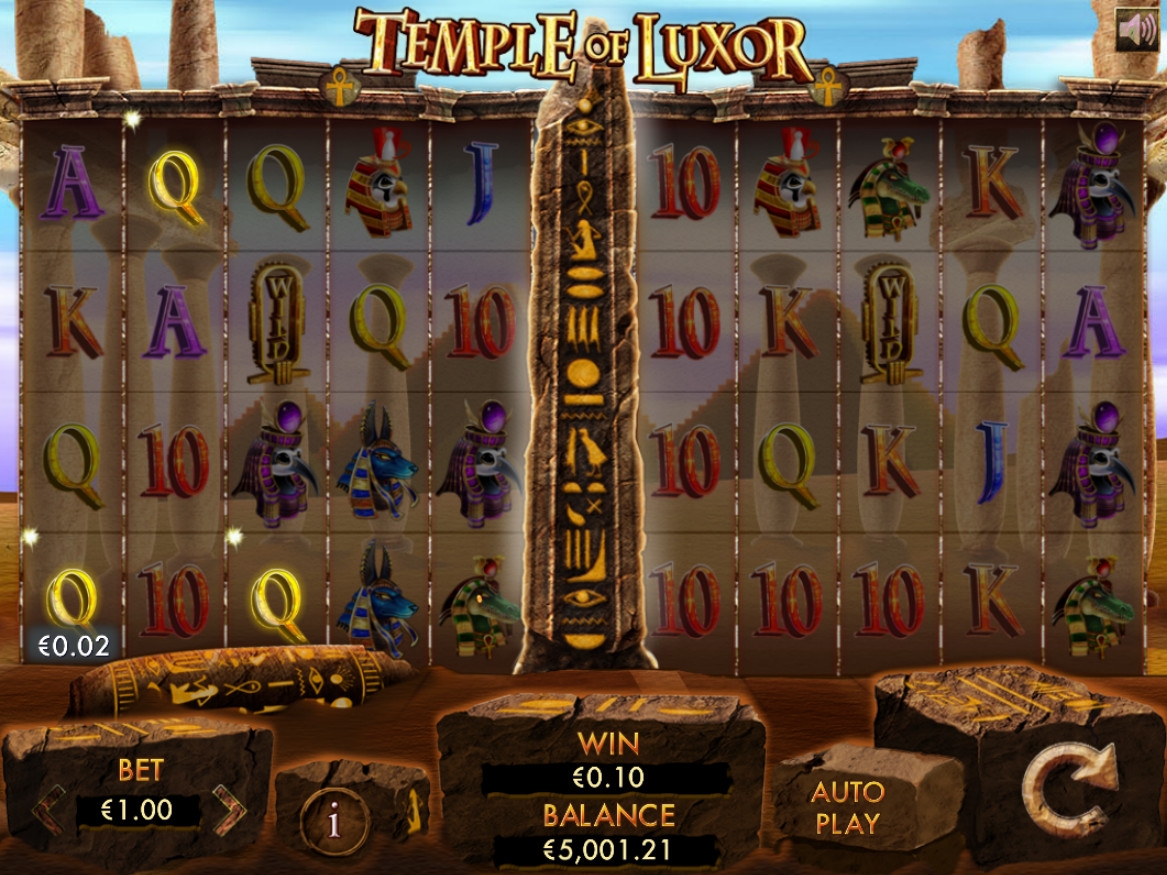 В роли базовых символов, используемых в Temple of Luxor, выступают четыре изображения священных для египтян животных в характерных образах, а также шесть букв и цифр, означающих номиналы карт от девятки до туза.
