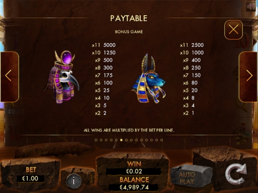 Здесь те же картинки могут формировать комбинации, состоящие из двух – одиннадцати картинок. Цепочки образуются на пятидесяти линиях как слева направо, так и справа налево. Выплаты рассчитываются по специальным коэффициентам из отдельной таблицы. Они бывают от х1 до х5000.