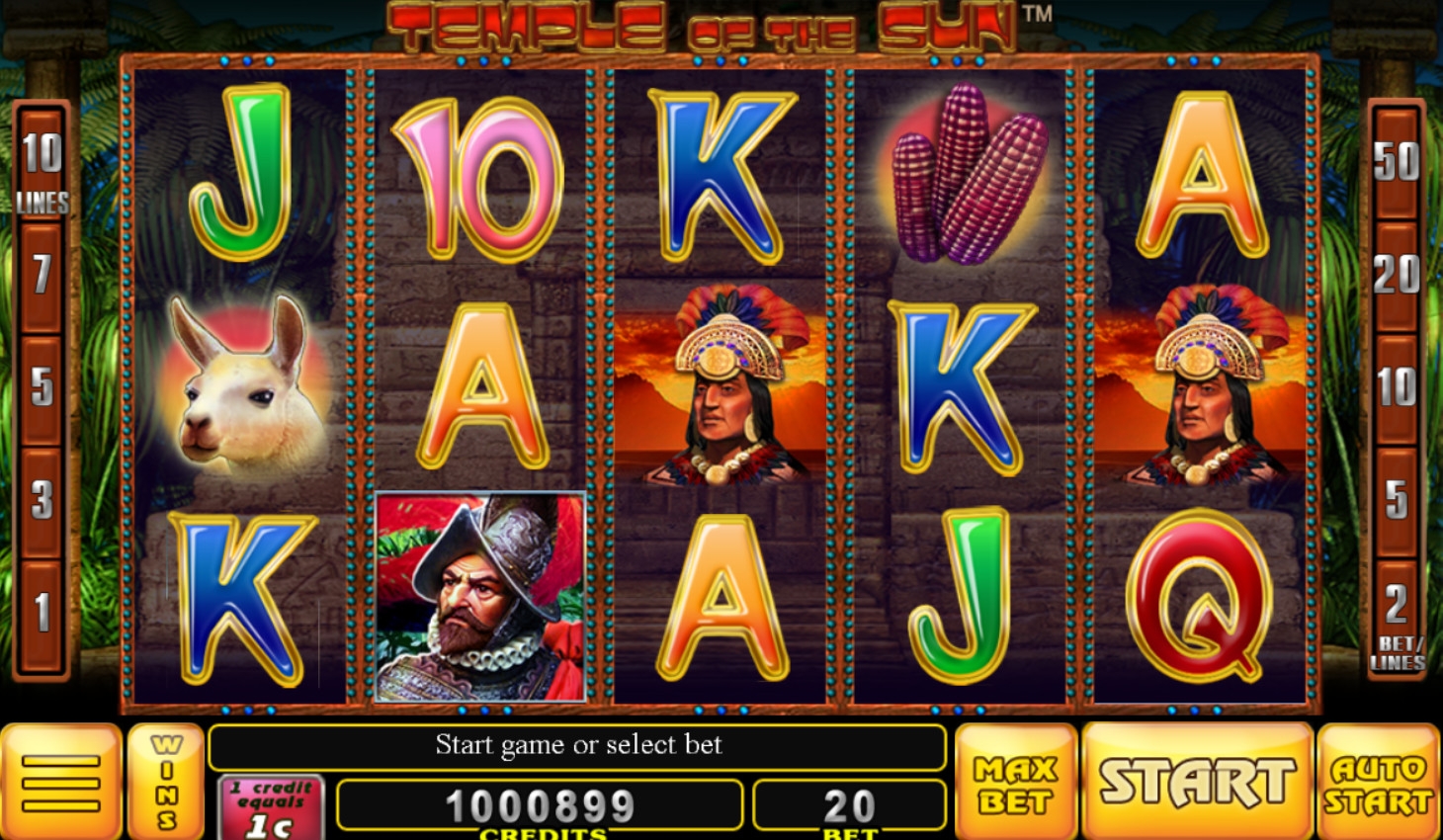 Помимо традиционных номиналов игральных карт, на барабанах автомата «Храм солнца» можно увидеть кукурузные початки, белую ламу, индейца и конкистадора.