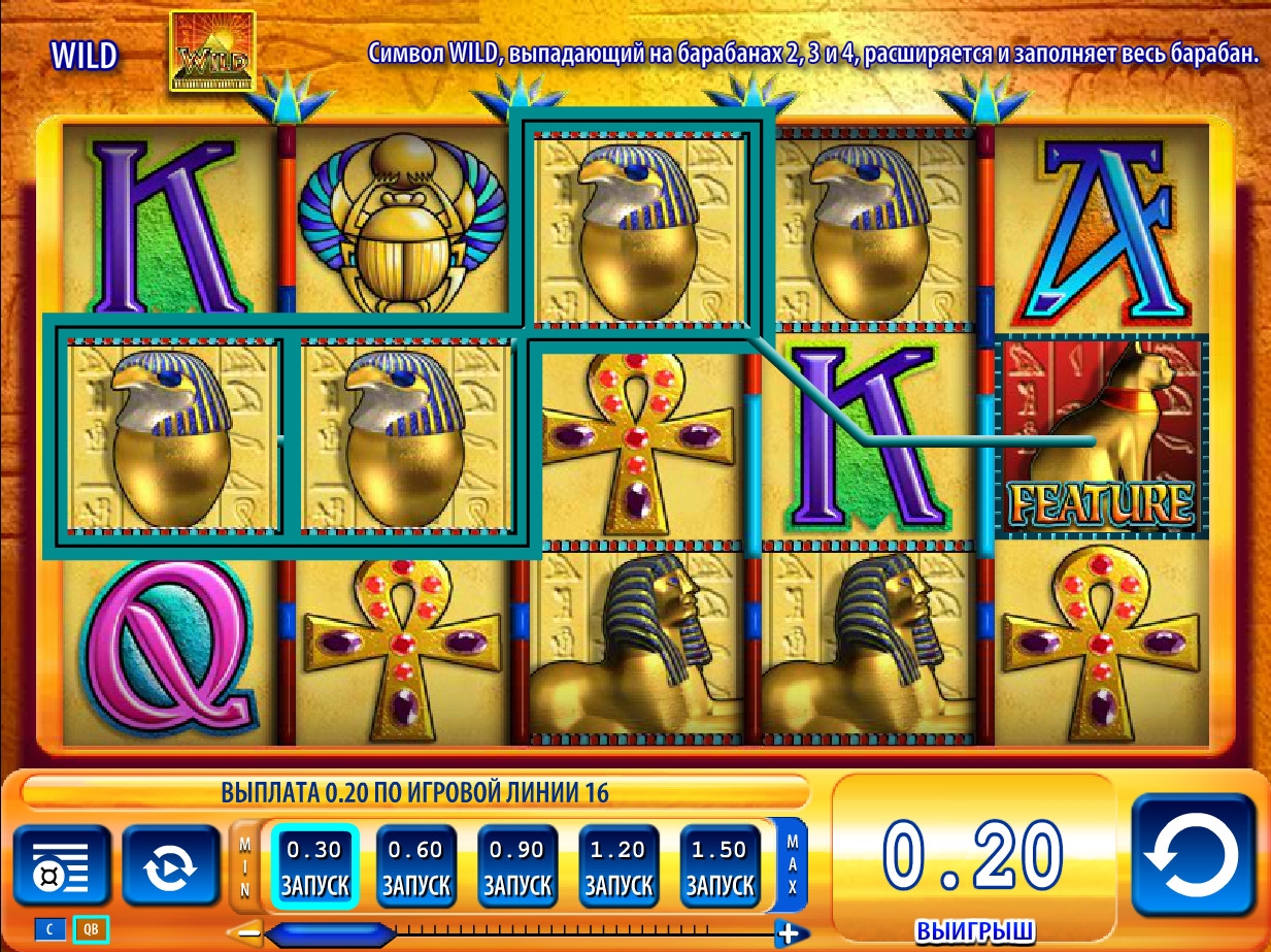 Специальными возможностями наделены Wild (пирамида, над которой восходит солнце) и Feature (золотая статуя кошки). Давайте разберемся, чем они отличаются от прочих элементов: