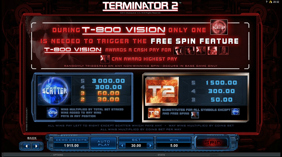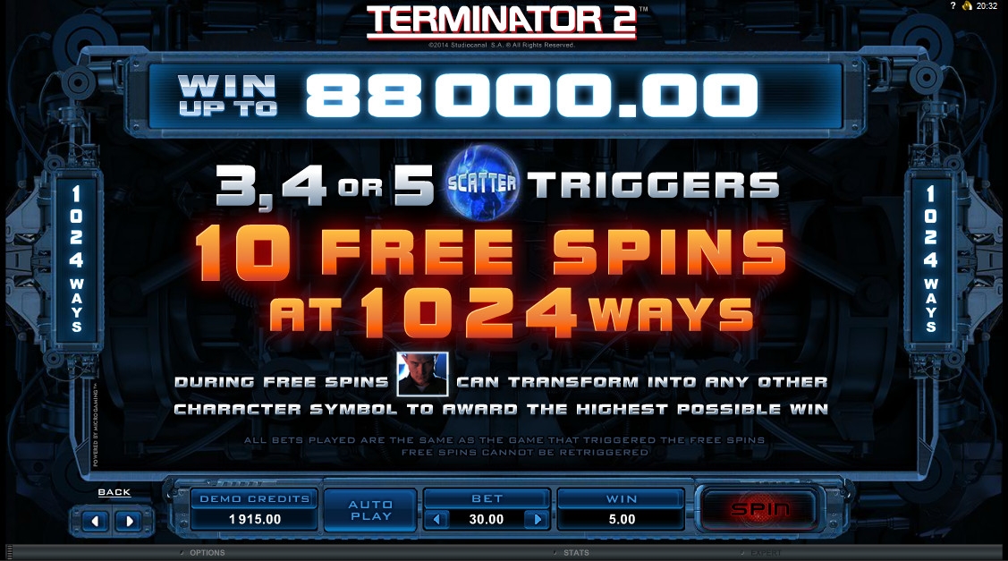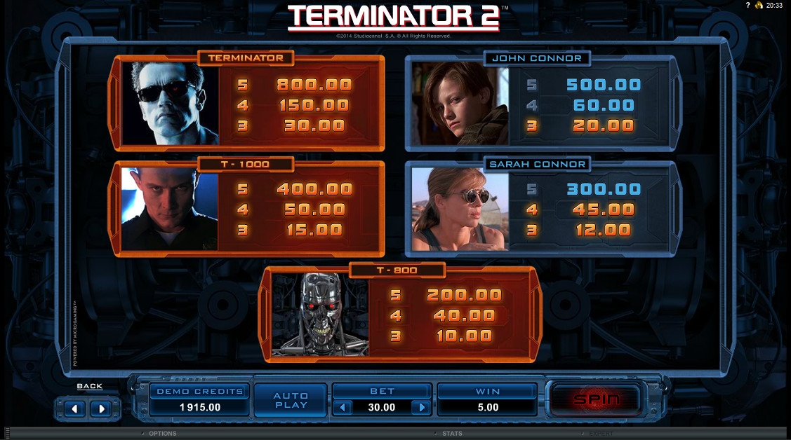 Можно не сомневаться, что среди сотрудников компании Microgaming также найдется немало его поклонников. Во всяком случае, недавно данный производитель решил порадовать любителей азартных развлечений бесподобным видео-слотом, посвященным фильму. Модель под названием Terminator 2 была выпущена на платформе Quickfire, и обзор от портала Casinoz познакомит вас со всеми ее особенностями.