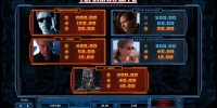 Все выплаты, начисленные по выигрышным цепочкам, суммируются и сразу переводятся на счет клиента. Раунда на удвоение в Terminator 2 нет.