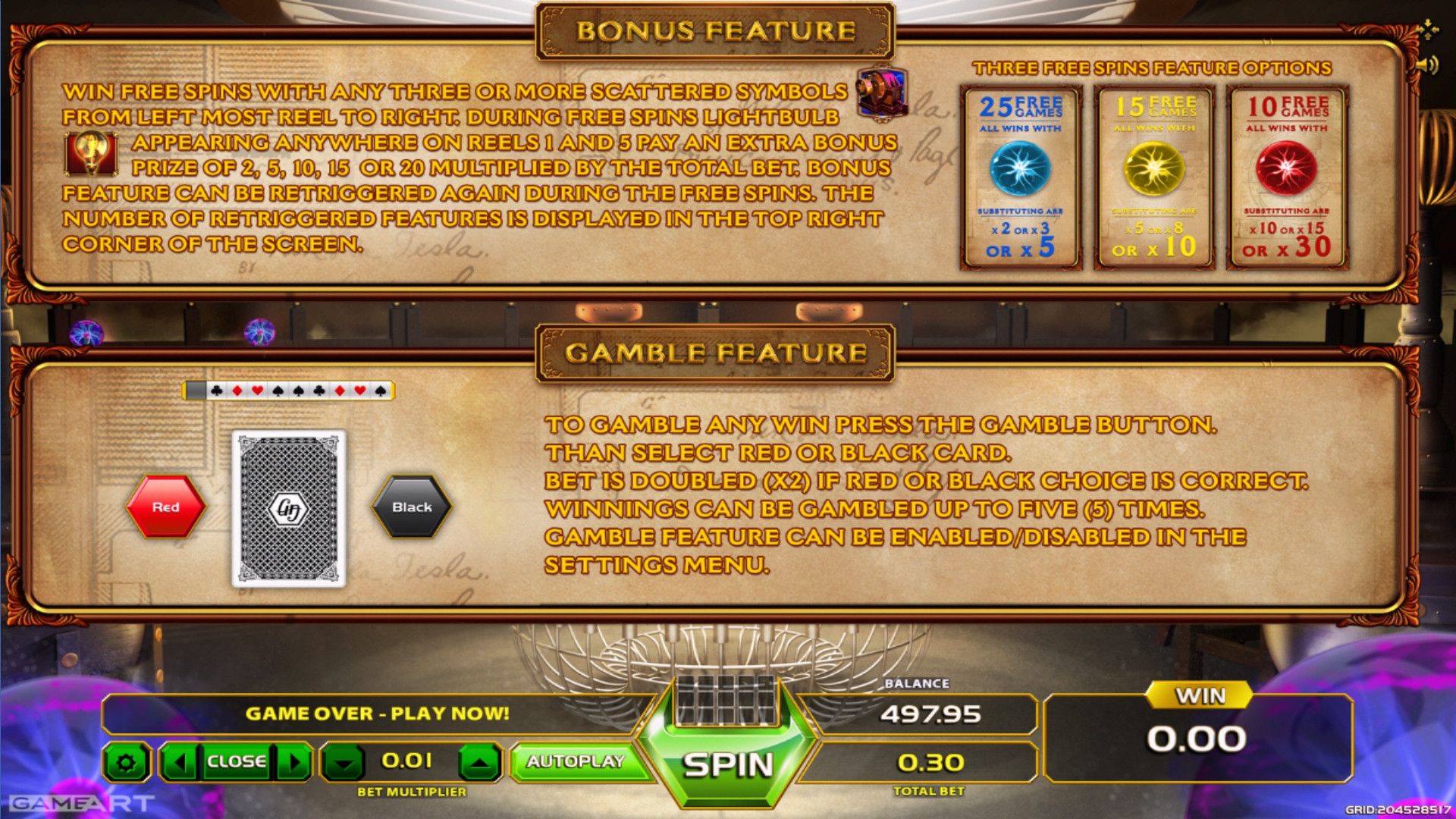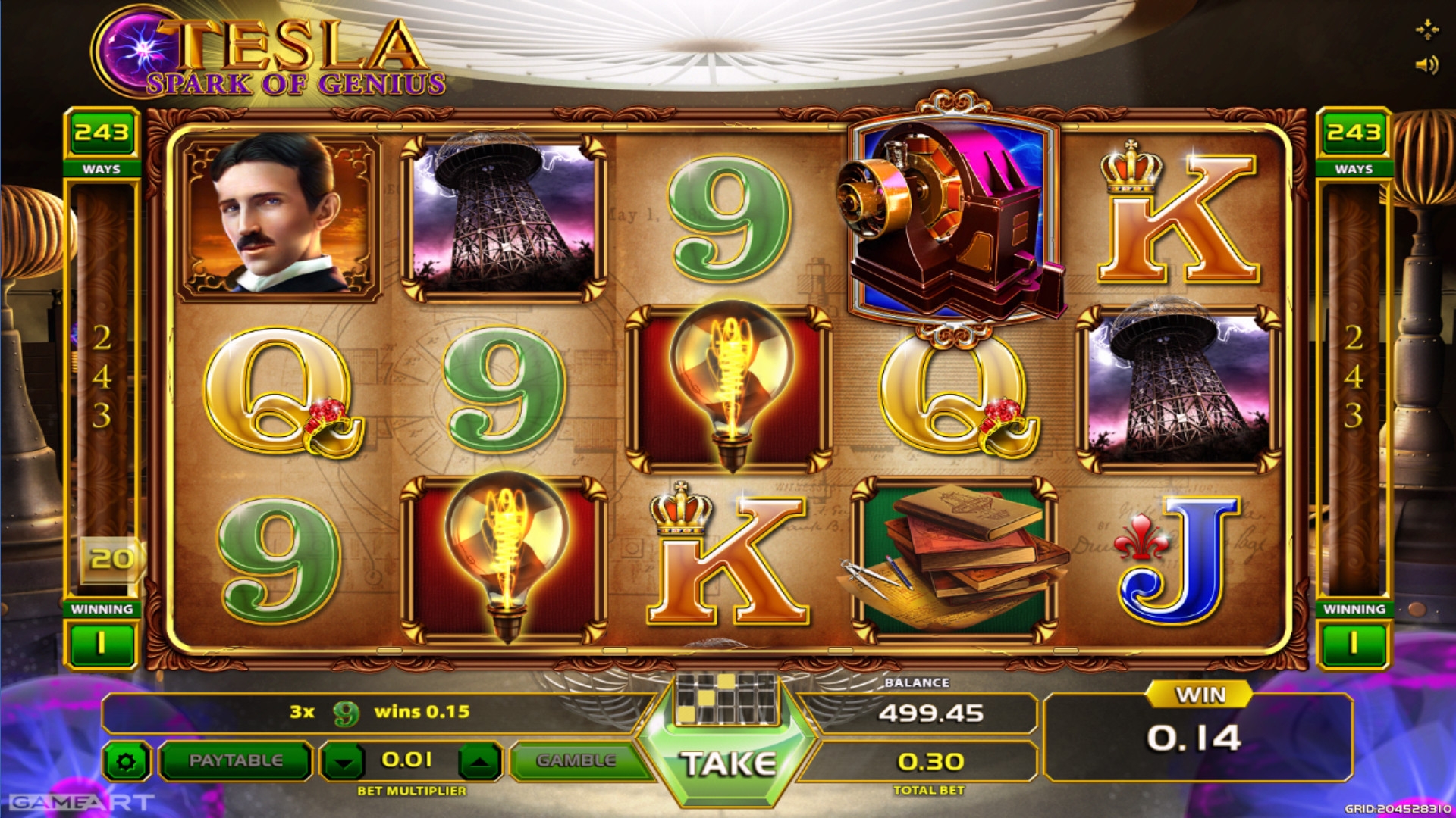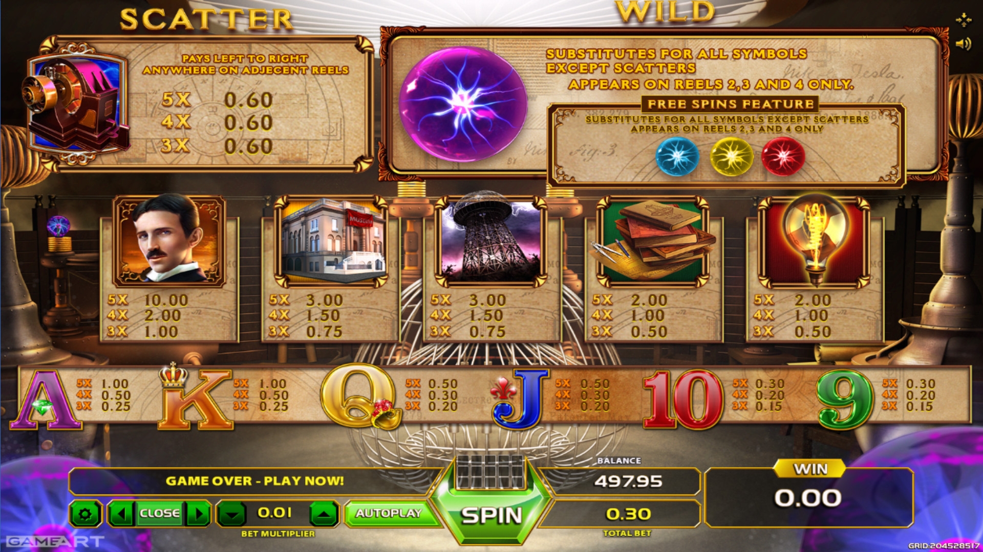 Вероятно, в числе разработчиков из компании GameArt также есть фанаты Теслы, которые инициировали выпуск игрового автомата Tesla: Spark of Genius. Обзору данной модели посвящена статья от Casinoz.
