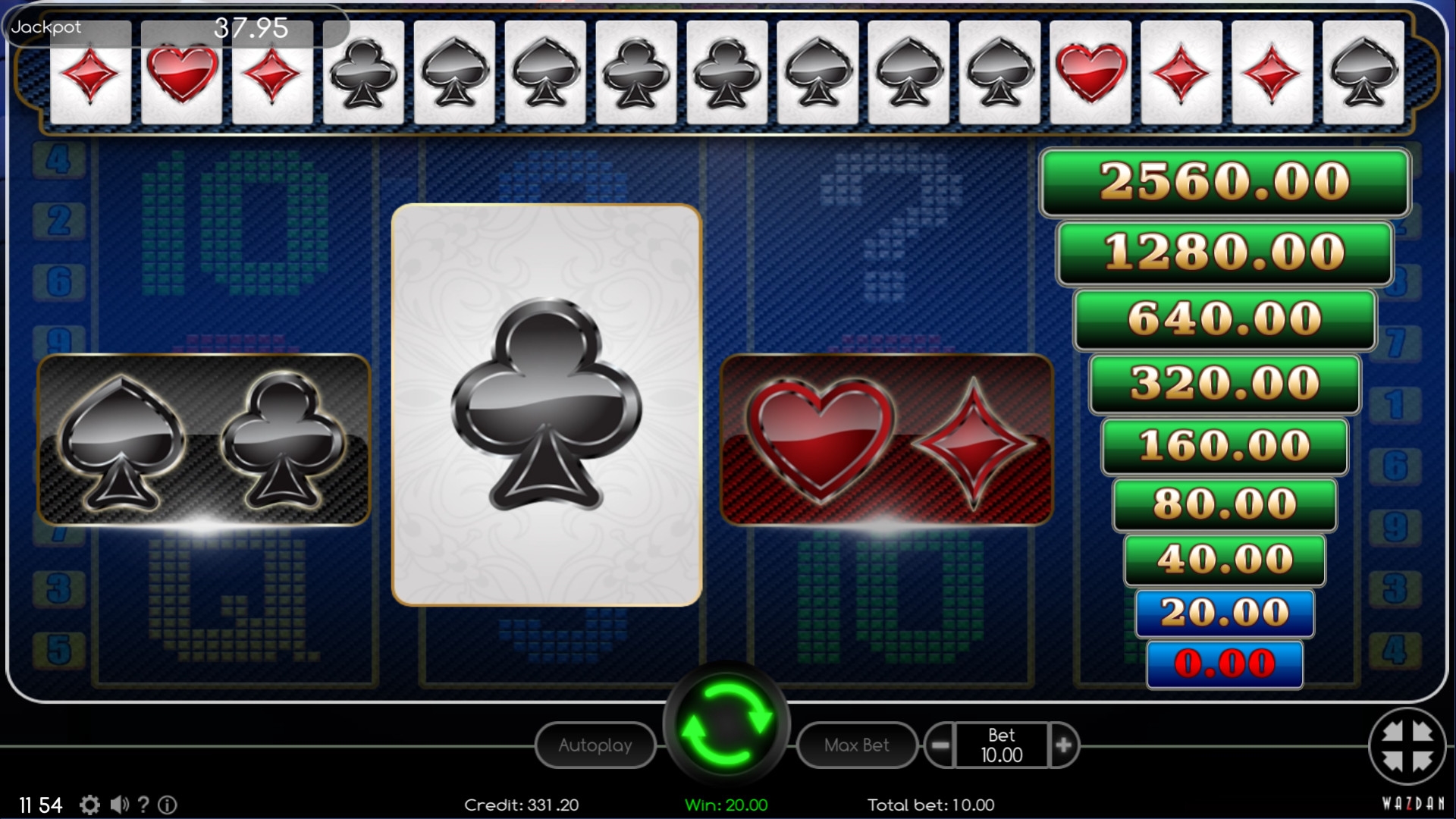 Если вы отдадите предпочтение второму варианту, вам нужно будет угадывать цвет карты, чтобы удвоить выигрыш. При ошибке вы лишаетесь денег. Играть можно до максимального лимита, но разрешается выходить на любом этапе.