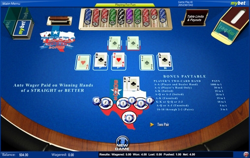 В покере Texas Hold ‘Em Bonus не разыгрывается прогрессивный джек-пот.